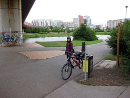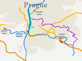 We took the Prague metro to Hůrka in Prague 13, to the official trailhead. Get out of the metro and follow the retro-future enclosed train bridge to the other side of the pond. There is a map there that designates the official Northern end of the Prague-Vienna Greenway. Head East-Southeast away from the sign. The markings were few and far between initially, but once we left greater Prague, the Greenway signage become pretty consistent. The start is the most difficult part to figure out. Try to orient yourself at the trailhead map, then head due east. You can either go under the highway, and follow the road to the left, or go the higher route, and take the pedestrian bridge over the highway. Look for RE-HL trail markers to get you to the A33 and, eventually, the A12.