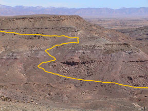Segment 1, mile 11.7 - The route climbs a steep embankment then continues ascending in the form of a deeply rutted ORV trail as it travels toward Porcupine Rim.